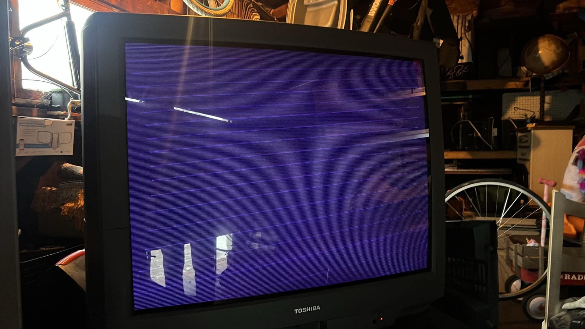 Je ne suis ps sûr d'avoir compris la nature exacte de ton problème, mais n'est-ce pas simplement les signaux de balayage que tu vois à l'écran parce que ta luminosité est mal réglée, trop poussée ?