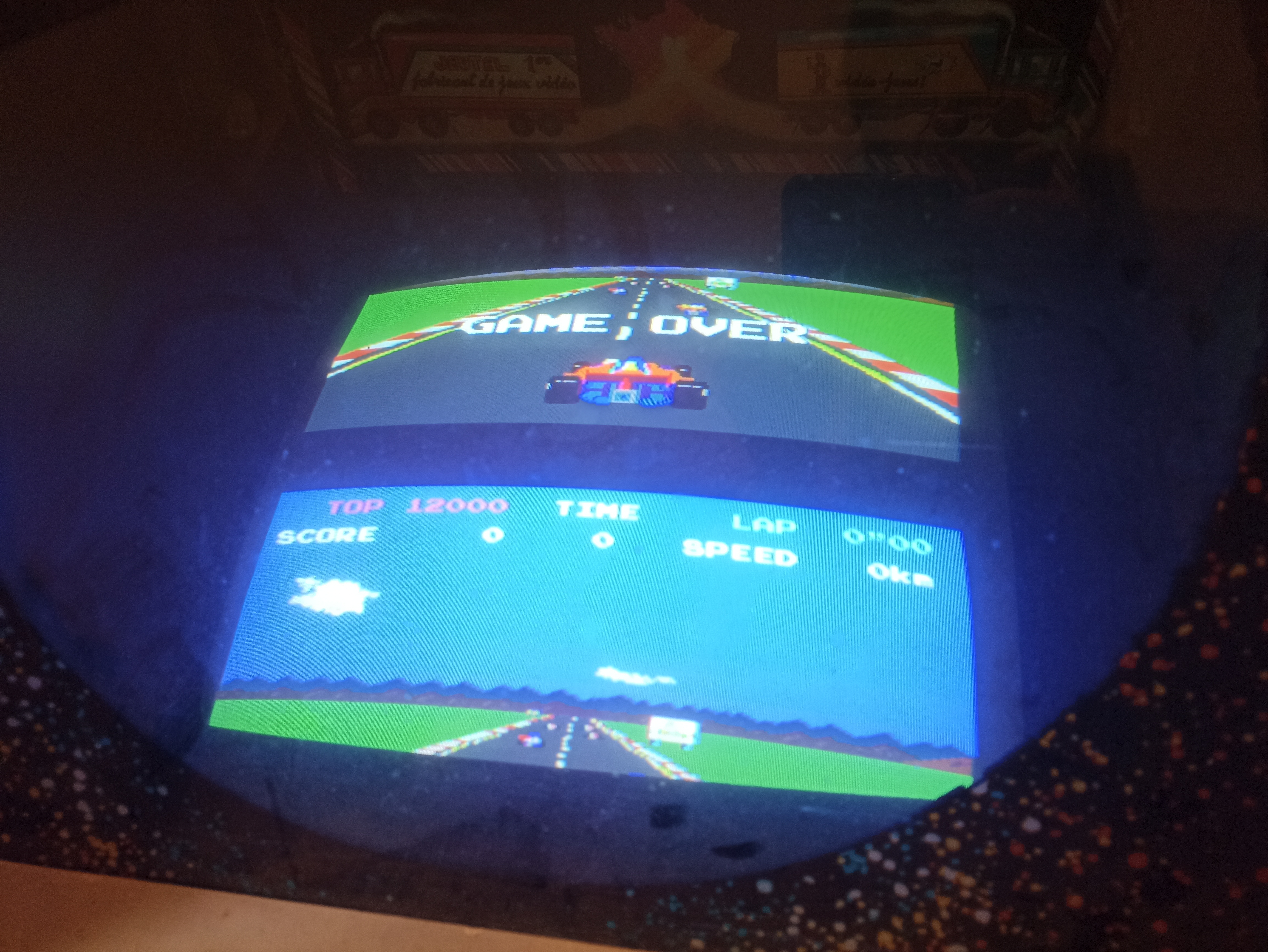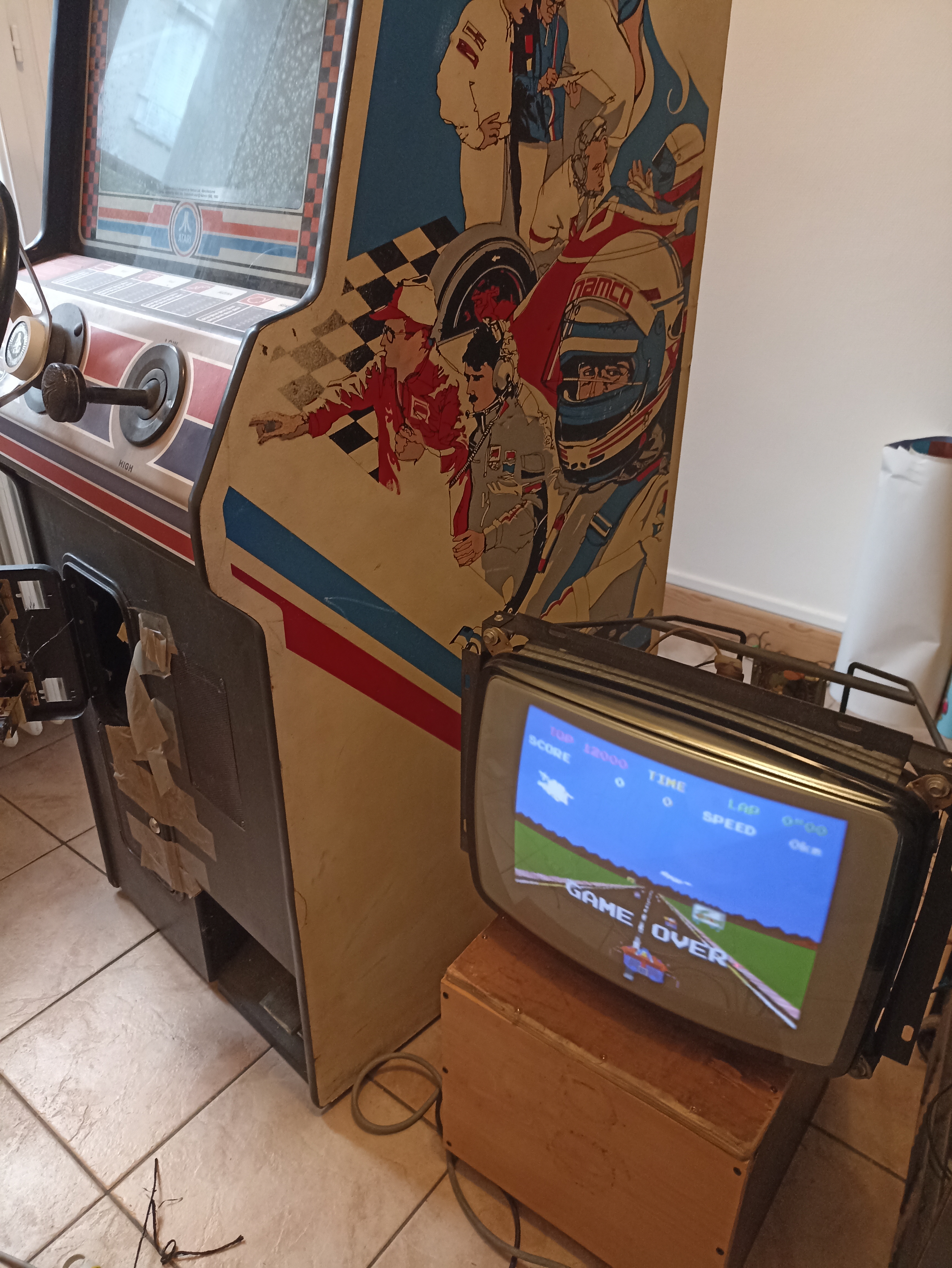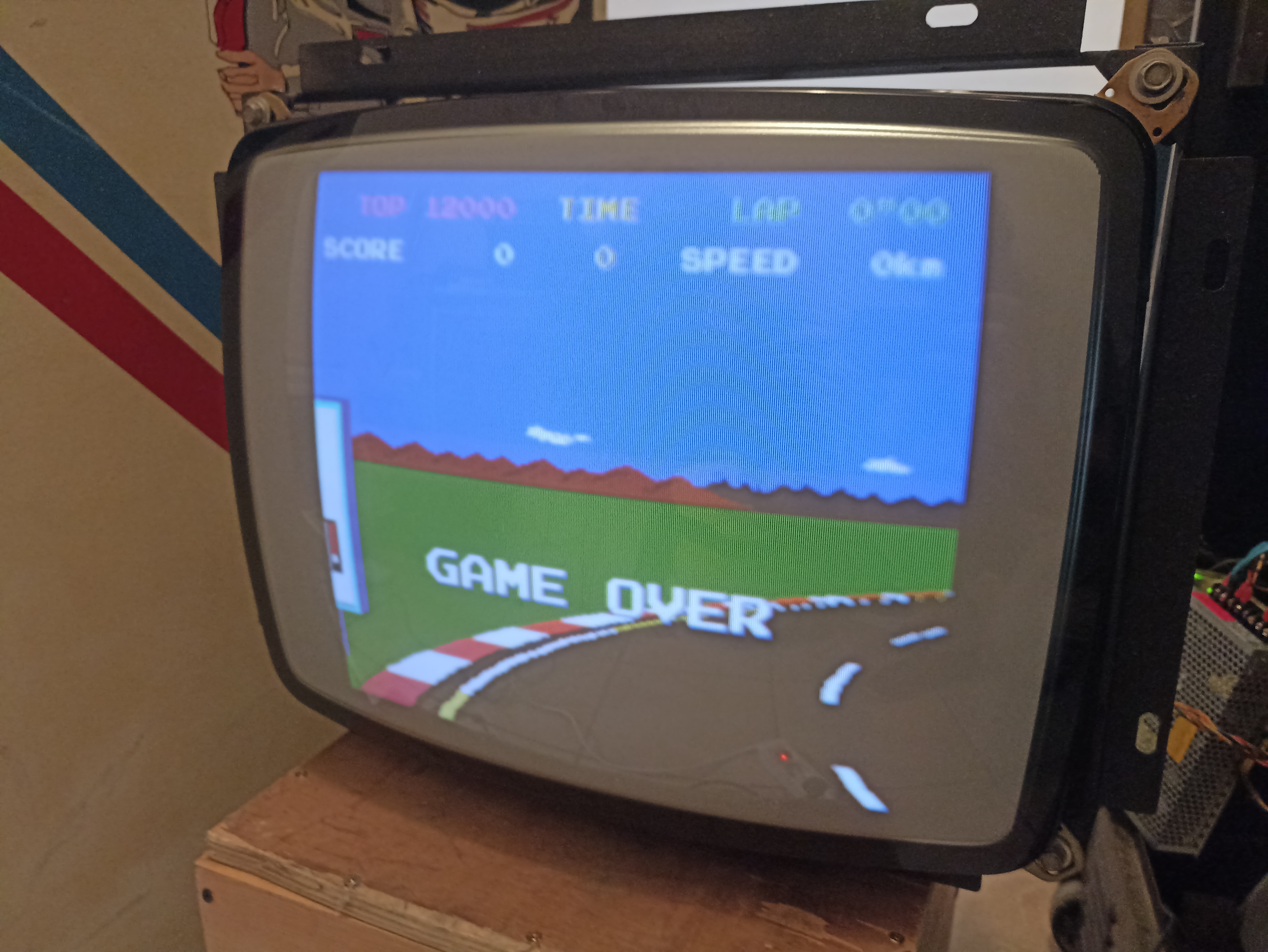 "Boooom !" (oui le PCB Pole Position boot avec ce bruitage  :o ) par contre rien à l'écran.  :-\  Quel idiot, l'alimentation de la platine était débranchée. (:x