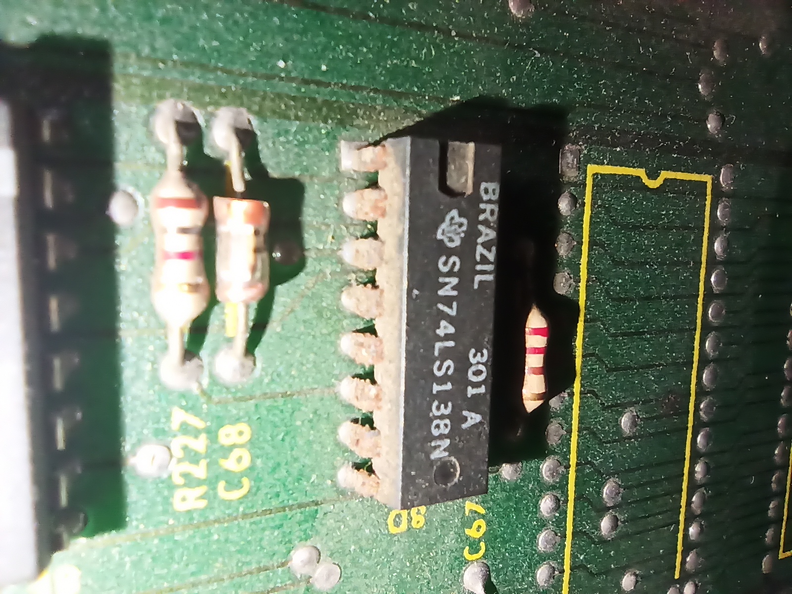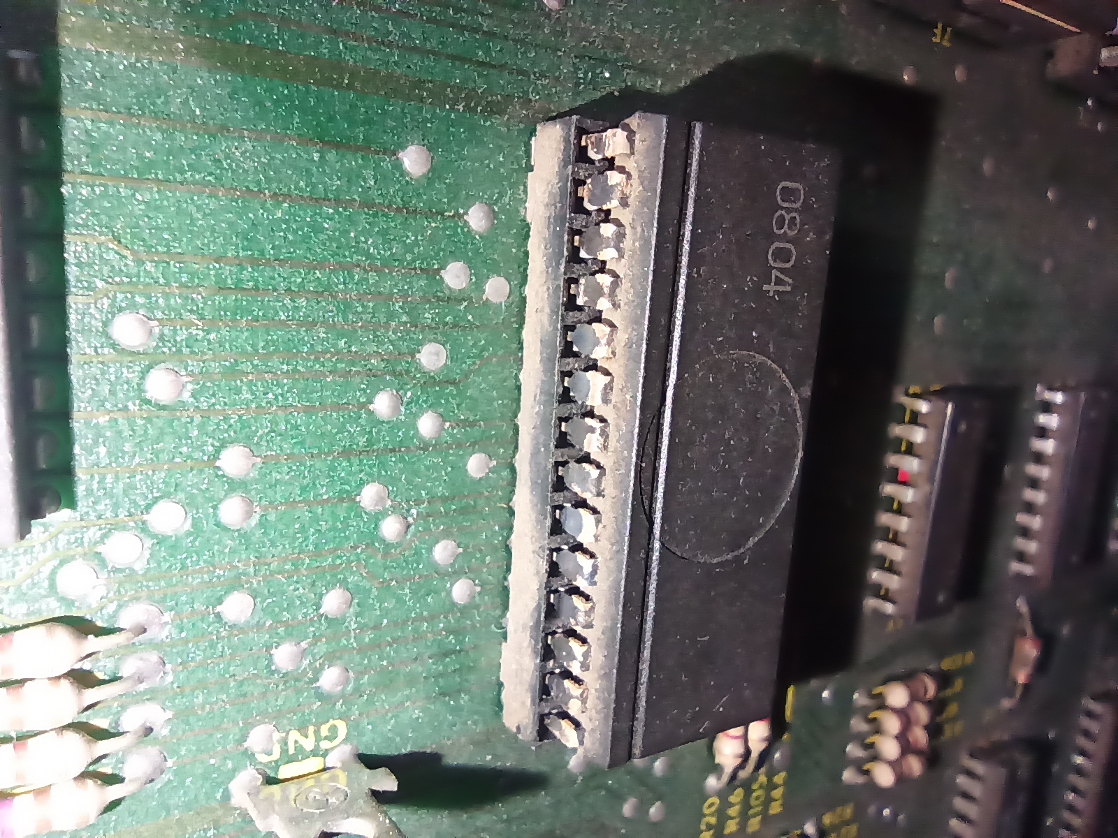 Après avoir grossièrement réassemblé ma Jeutel, j'ai longuement inspecté à la loupe mes PCB, histoire de voir si il n'y avait pas des dommages avec le transport, ou des billes d'étains indésirables. Rien ne semble vraiment inquiétant, si ce n'est quelques puces qui ont des pattes très abimées.  :(