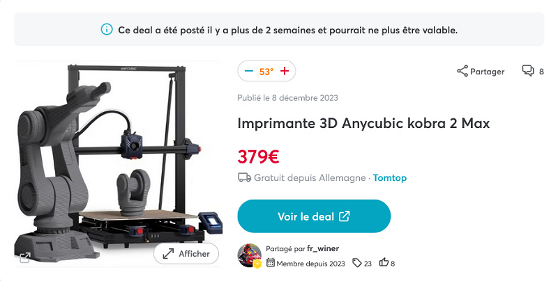 Parce que le deal que j'avais vu il y a quelques jours concernait la Anycubic Kobra 2 Max