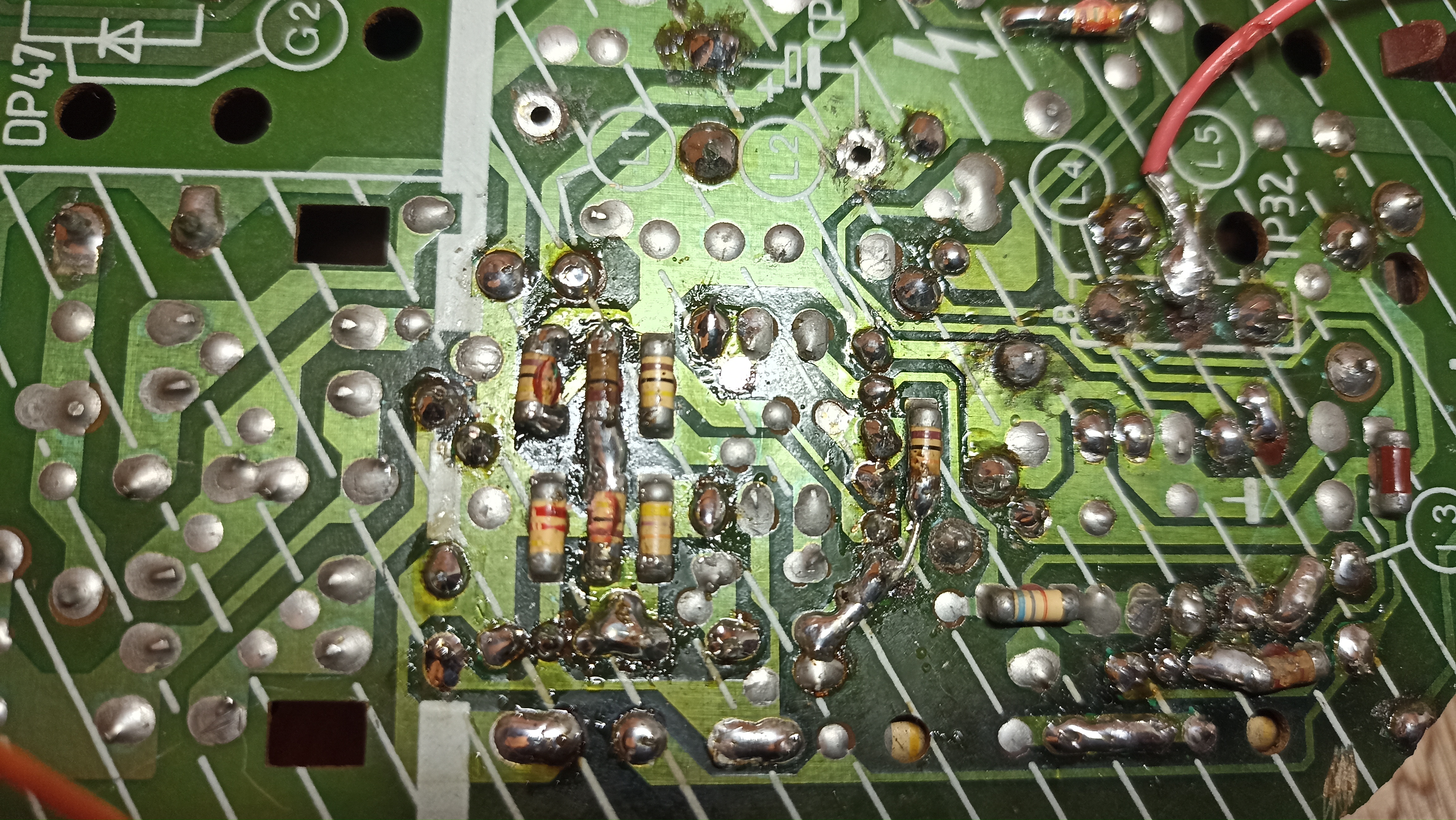 Le robot suspecte le condensateur CP16. Je vais demander aux spécialistes ce qu'ils en pensent. Ou alors, c'est peut-être simplement mes dessoudages/ressoudages hasardeux qui ont fragilisé quelque chose, une pastille ou une piste, arf.